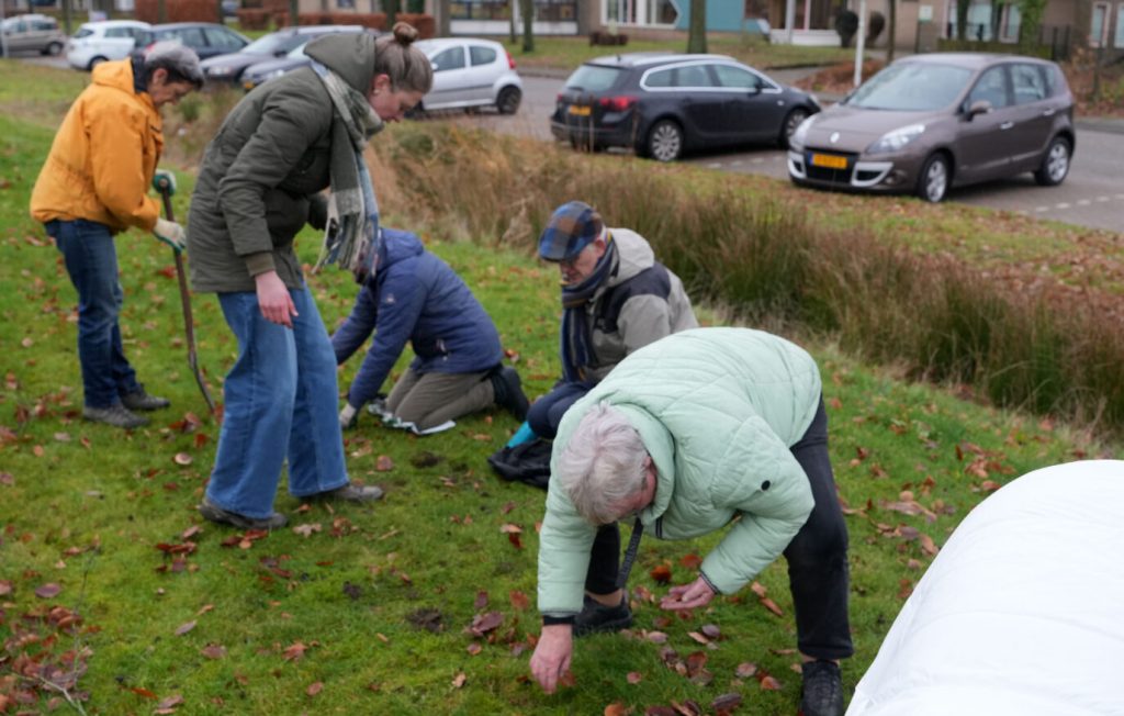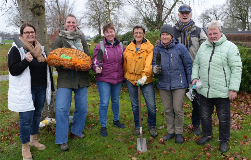 Dinsdagmiddag 9 december 2025 waren ze met zeven personen present om de bollen, die dorpsbelang Oentsjerk van de gemeente gekregen had, te poten.