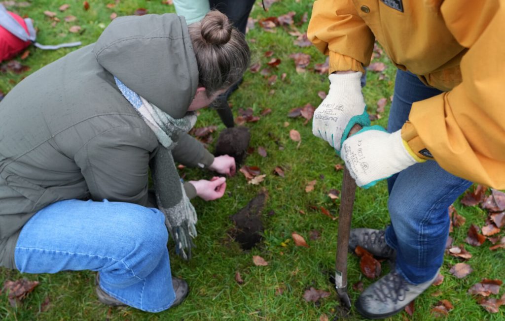 Onder leiding van Grytine Twijnstra van KEaRN én Trynwâlderein zetten de vrijwilligers de schep of de bollenpoter in de grond en voegden de biologische bollen toe aan moeder aarde. Waar ze in het voorjaar op zullen komen en of ze mooi zullen bloeien is natuurlijk afwachten!