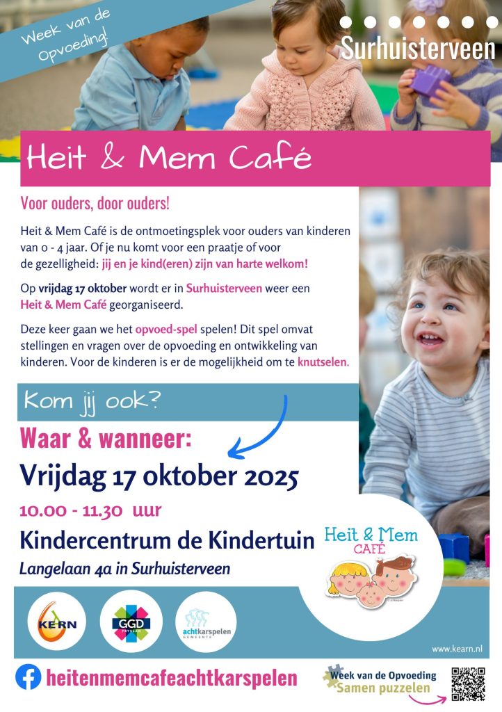 😀Op vrijdag 17 oktober is er in Surhuisterveen een Heit & Mem Café in het teken van de Week van de Opvoeding.
