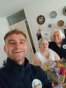 Dinsdag 24 juni ontving ze uit handen van onze buurtwerkers Roan en Doetie een mooie mand vol gezonde producten overhandigd als prijs.